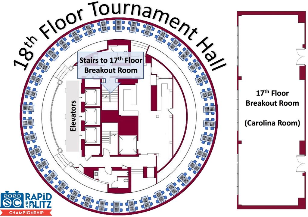 The SC Rapid and Blitz Championship is hosted at the Top of Carolina on the 18th and topmost floor of the Capstone House. The Capstone House is open to the public. Enter through any street entrance and make your way to the lobby elevators.